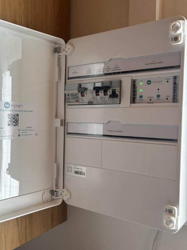 Nos équipes ont installé 6 panneaux photovoltaïques sur une toiture en ardoise, reliés à une batterie virtuelle MyLight150.